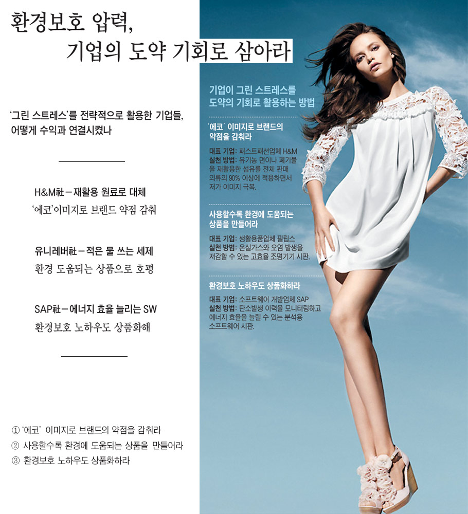 ÀÌó·³ ±â¾÷ÀÌ È¯°æÀ» º¸È£Ç϶ó´Â ¾Ð·ÂÀ» ´À³¢´Â °ÍÀ» '±×¸° ½ºÆ®·¹½º(green stress)'¶ó°í ÇÑ´Ù. ¼ÒºñÀÚµé°ú ȯ°æ´ÜüµéÀÇ ÁÖ¹®ÀÌ °¥¼ö·Ï ±î´Ù·Î¿öÁö¸é¼ ±â¾÷µéÀº 'ģȯ°æ' ³ëÀÌ·ÎÁ¦¿¡ ½Ã´Þ¸± Á¤µµ´Ù. ¼¼°è ÁÖ¿ä ¾ð·Ð ±¤°í¿¡¼ 'ģȯ°æ'À» °Á¶ÇÏ´Â ±¤°íÀÇ ºñÁßÀÌ 1980³â´ë ¸» 2% ¹Ì¸¸¿¡¼ 2008³â 10% ÀÌ»óÀ¸·Î Áõ°¡Çß´Ù(ȯ°æ ¸¶ÄÉÆÃ¾÷üÀÎ Å×¶óÃÊÀ̽º). 2008³â ±Û·Î¹ú ±ÝÀ¶À§±â ¼Ó¿¡¼µµ ºÏ¹Ì ±â¾÷ÀÇ 80%°¡ ȯ°æ °ü·Ã ºñ¿ëÀ» ´Ã¸®°Å³ª À¯ÁöÇÒ °ÍÀ̶ó°í ÀÀ´äÇß´Ù. ¢º ±â»ç ´õ ÀÚ¼¼È÷ º¸±â