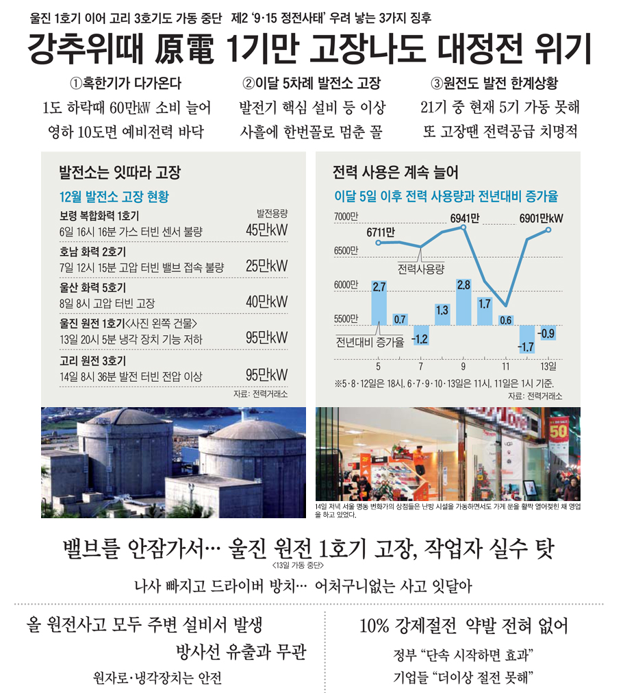 ¡ã ºÎ»ê ±âÀ屺ÀÇ °í¸® ¿øÀڷ¹ßÀü¼Ò 3È£±â°¡ 14ÀÏ ¿ÀÀü 8½Ã 36ºÐ Åͺó ¹ßÀü±â ÀÌ»ó ½ÅÈ£·Î °¡µ¿À» ¸ØÃè´Ù. Àü³¯ ¿ïÁø ¿øÀü 1È£±â°¡ °íÀåÀ¸·Î ¹ßÀüÀ» Áß´ÜÇÑ µ¥ À̾î 12½Ã°£ ¸¸¿¡ ¶Ç´Ù½Ã ¿øÀü °¡µ¿ÀÌ Áß´ÜµÈ °ÍÀÌ´Ù. ¢º ±â»ç ´õ ÀÚ¼¼È÷ º¸±â